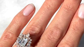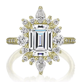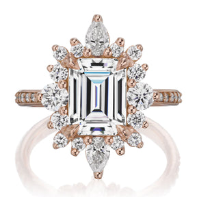 Emerald Cut Moissanite Center, Diamond Halo