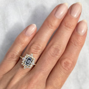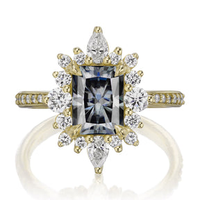 The vintage-inspired midsize Talia makes a statement engagement ring or treat-yourself gift. Featuring a radiant cut grey Iconic™ moissanite center, accented by conflict-free lab-grown diamonds. The Talia is as ethical as it is sparkling.
