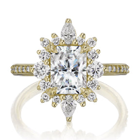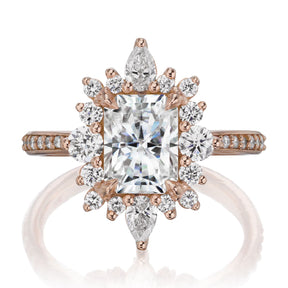 The vintage-inspired midsize Talia makes a statement engagement ring or treat-yourself gift. Featuring a radiant cut Forever One™ colorless moissanite center from Charles & Colvard, accented by conflict-free lab-grown diamonds.