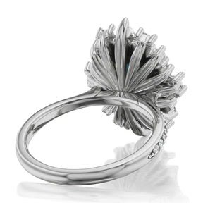 The vintage-inspired Azura makes a statement engagement ring or treat-yourself gift. Featuring a radiant cut opalescent teal sapphire center, accented by conflict-free mined diamonds. This sapphire is conflict-free, natural, and untreated. It is a one-of-a-kind, so snag it before it sells out!