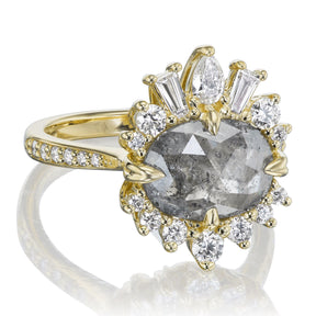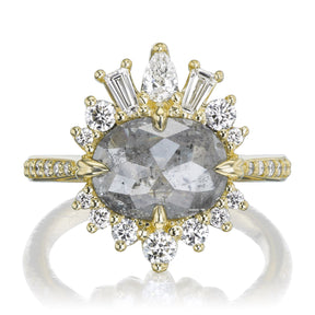 Oval Rose Cut Salt + Pepper Diamond Center, Diamond Halo
