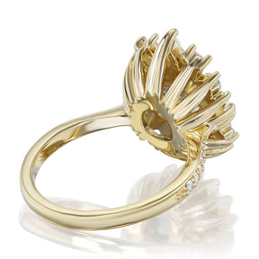 The vintage-inspired Theia makes a statement engagement ring or treat-yourself gift. Featuring an oval rose-cut salt + pepper diamond set in an East-West orientation, accented by an asymmetrical burst of conflict-free mined diamonds. Rose cut diamonds are individually hand-cut, making each diamond a one-of-a-kind!