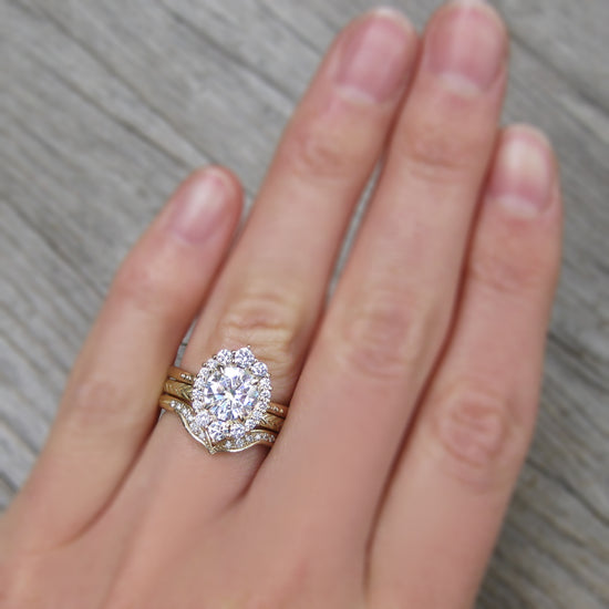 • Designed to stack flush against our three-stone and solitaire engagement rings. Can stack with our halo rings with a third "spacer" band in between (engagement ring and spacer band sold separately)