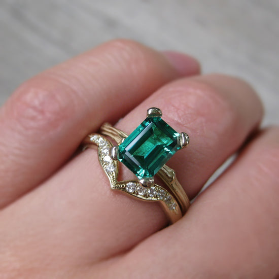 Our rings are available with your choice of lab-grown or Canadian mined accent diamonds. Both diamonds grade the same in clarity and color, and therefore are visually identical. The only difference is their origin, as one option is lab-created, and the other is earth-mined from the Canadian artic. Learn more about lab-grown diamonds here. Learn more about Canadian mined diamonds here.