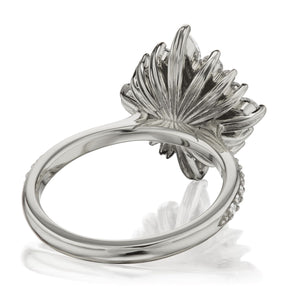 Lab-grown diamonds have the exact chemical, optical, and physical properties as mined diamonds, which means they look visually identical. The only difference is that lab-created diamonds are grown in laboratories that recreate the same environment that causes diamonds to form in the earth. The other benefit is that lab-grown diamonds have a smaller carbon footprint and less humanitarian impact than mined diamonds. These lab-grown accent diamonds are custom cut for Kristin down to the hundredth of a millimeter into the perfectly calibrated sizes needed to achieve each unique design. Learn more about lab-grown diamonds here.